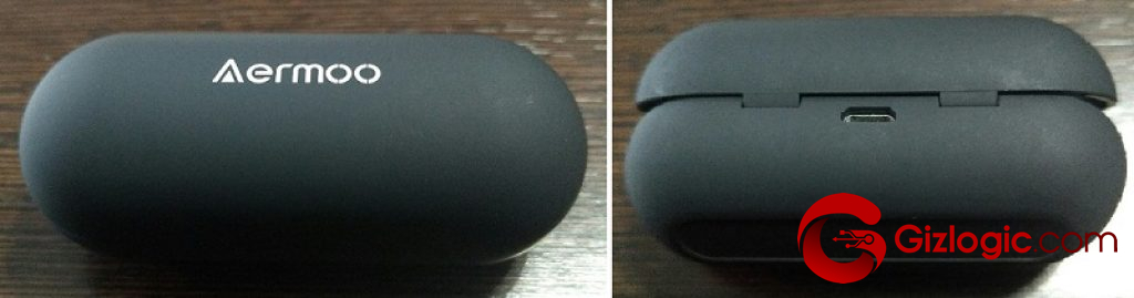 El contenedor de carga posee un botón de encendido y apagado que nos permitirá cargar los auriculares si lo encendemos y actuar como un estuche para guardar los Aermoo B3 si está apagado.
