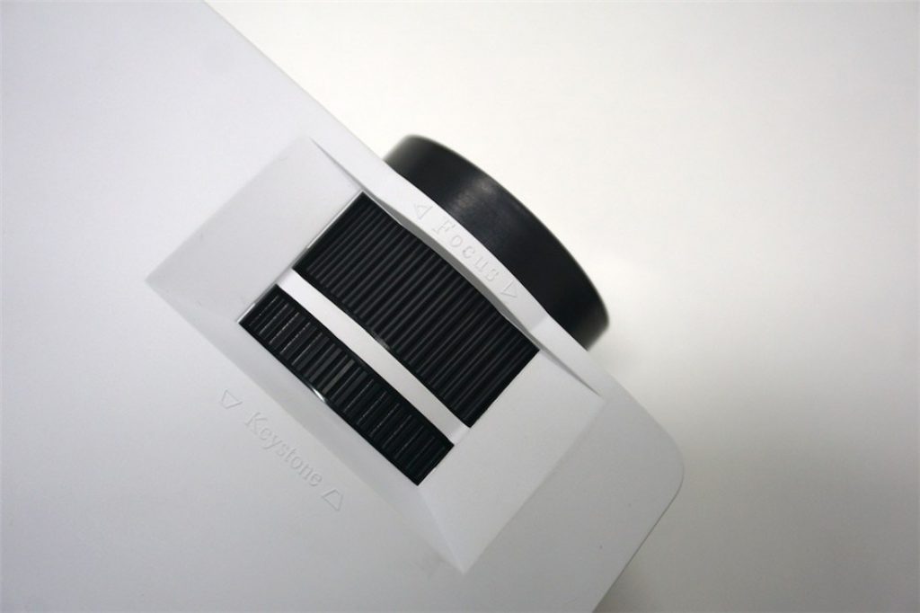 Por su parte, en el lado superior se encuentran las teclas de navegación, y dos ruedas para ajustar el enfoque y el tamaño de la imagen proyectada. Mientras que los puertos y conexiones se ubican en la parte trasera del Alfawise A8, se trata de los conectores para audio de 3.5 mm, puerto AV, puerto HDMI, puerto USB, ranura micro SD y el puerto VGA. Por lo que se trata de un equipo con buenas opciones de conectividad.