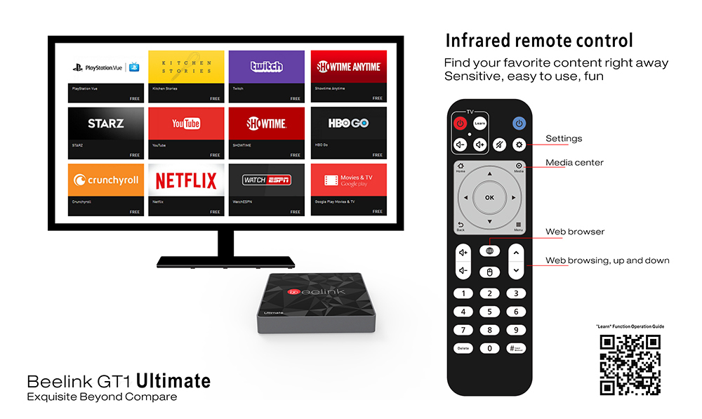 | Contenido del paquete | 1 x Beelink GT1 Ultimate TV Box, 1 x control remoto, 1 x cable HDMI, 1 x adaptador de corriente, 1 x manual en Inglés |