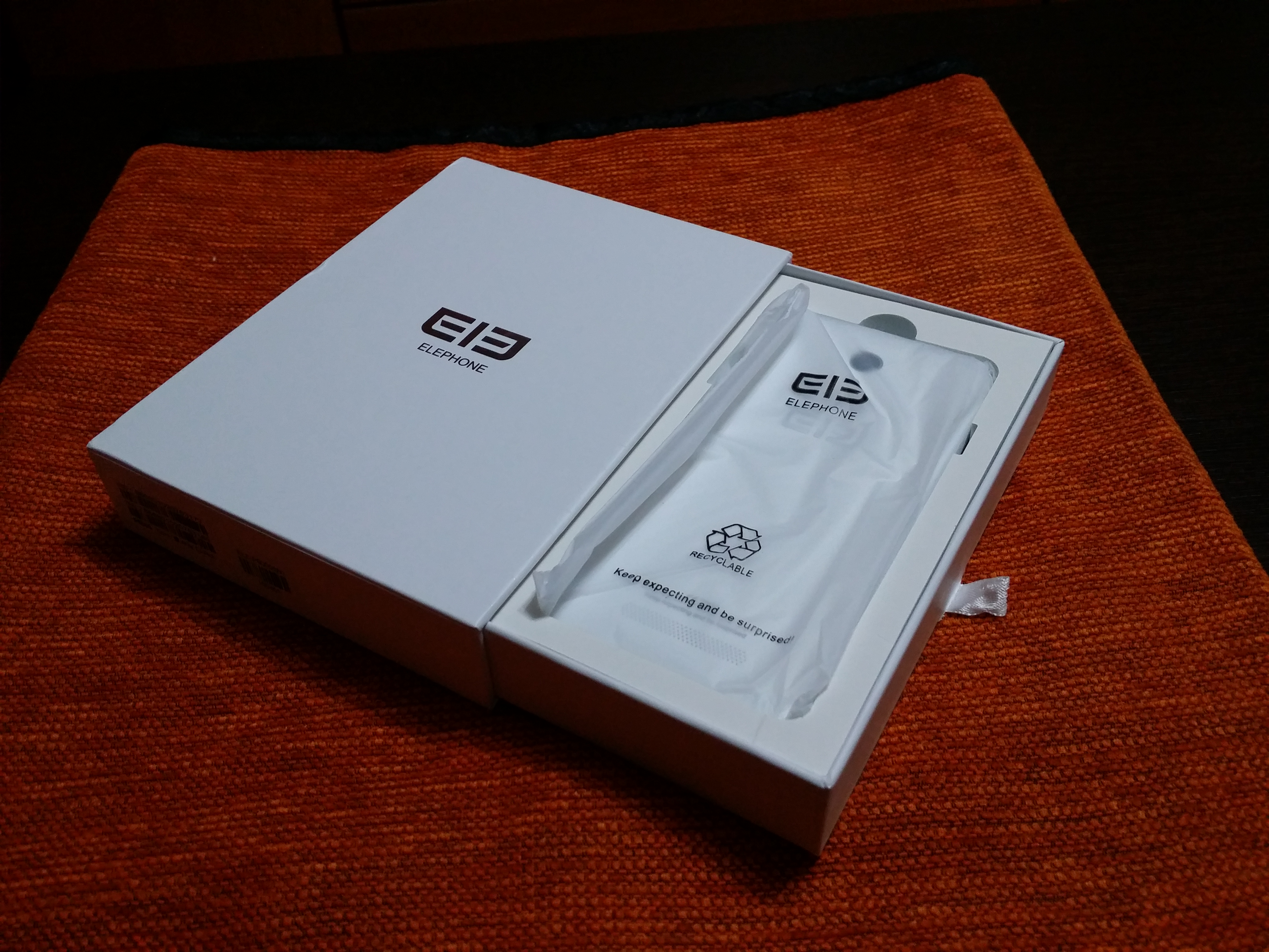 Como siempre empezaré hablando de la caja del modelo en cuestión. La caja del Elephone P6000 Pro es robusta y de aspecto elegante y sobrio. En el reverso y anverso vemos que trae impreso el logo de la empresa en color plateado. En su lateral comprobamos que también trae el sello de la casa y la frase “keep expecting and be surprised” o lo que es lo mismo “mantente expectante y sorpréndete”.