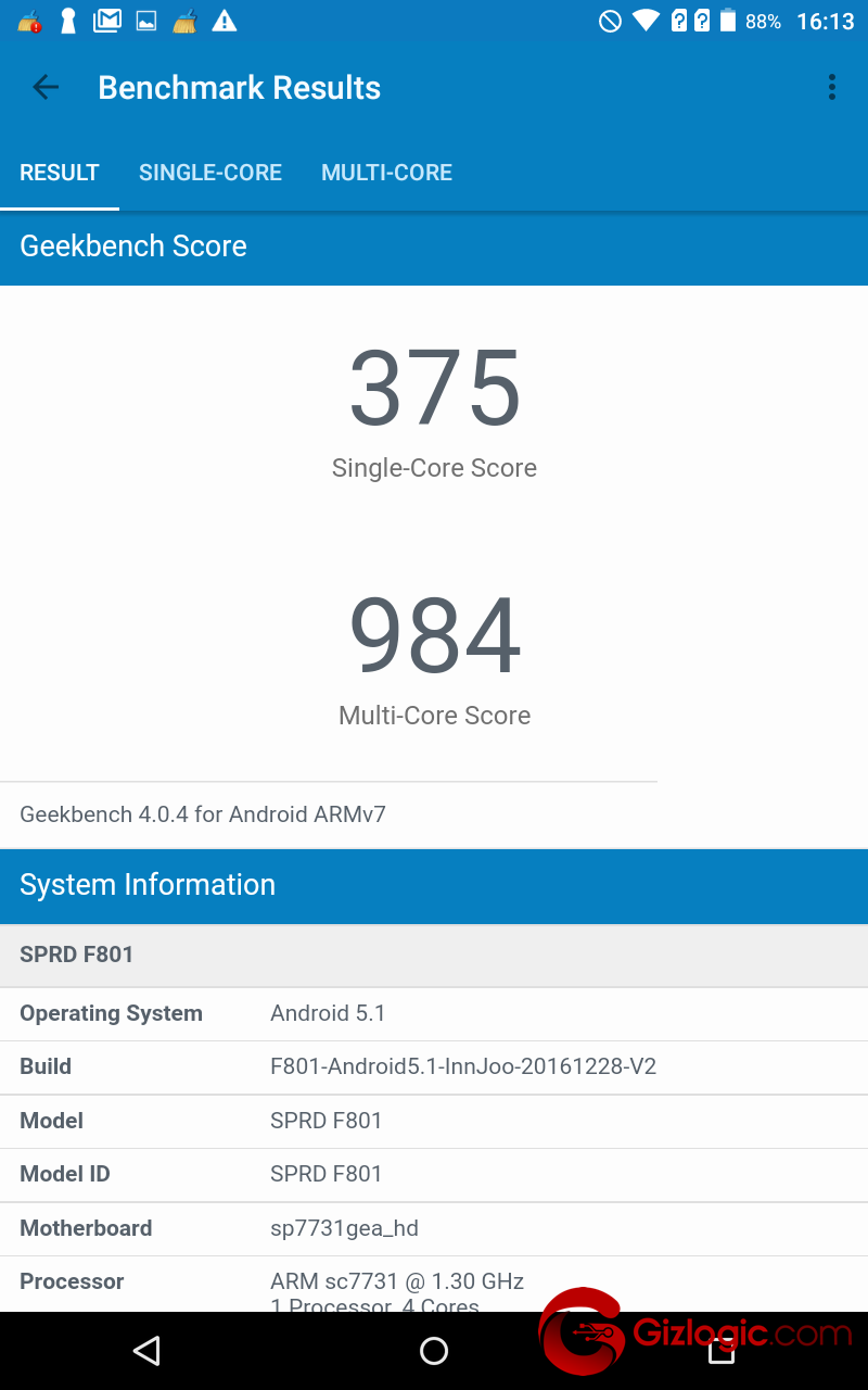 InnJoo F801 es una tableta 3G equilibrada a nivel de hardware aunque con una configuración modesta limitada por el precio y la gama a la que pertenece. En su interior tenemos un SoC Spreadtrum SC77, un procesador de 4 núcleos con una frecuencia de 1,3 GHz y GPU Mali-400. El chipset funciona bien para la mayoría de usos como la navegación web, apps y contenido streaming de vídeo. Aunque la fluidez entre herramientas y ventanas está algo ajustada por la memoria RAM de 1 GB. No es una tableta de alto rendimiento técnico sino que está indicada para un uso sencillo y relajado del dispositivo.
