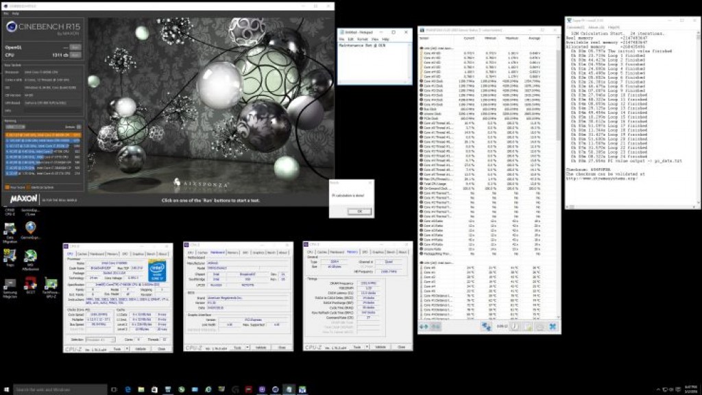 Más allá de las fotografías, el Intel Core i7-6850K fue sometido a algunos test como 3DMark Firestrike, SuperPi 32M y Cinebench R15 (ASRock X99 Extreme3, 16 GB de memoria RAM DDR4-2133 MHz y Nvidia GeForce GTX 980 Ti) para comprobar su rendimiento frente al i7-5820K, y la verdad es que la mejora en el test gráfico fue casi inexistente, con una mejora en el test de CPU de alrededor del 10% frente a su antecesor; una tónica ésta que se lleva repitiendo ya durante varios años en las diversas gamas y donde seguimos viendo mejoras con cuentagotas por parte de Intel, algo que no le supone demasiado problema gracias a su ventaja sobre AMD en este terreno del rendimiento puro y duro. Estos fueron los resultados: