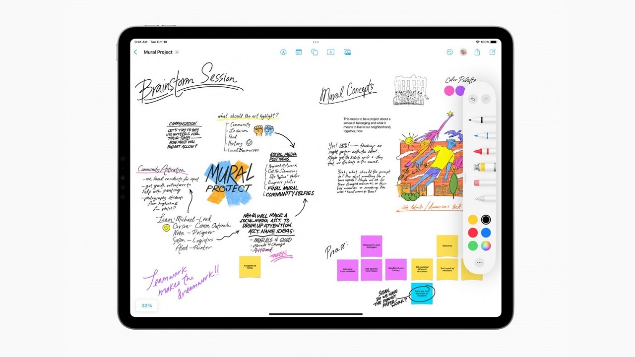 Lo más atractivo de esta versión se encuentra en el debut de la App FreeForm, un sistema propietario de la marca de Cupertino que permite encontrarse con un canvas en blanco sin límites donde todos los usuarios de un iPad compatible tendrán a su disposición un gran número de herramientas creativas y de edición para dejar volar su imaginación.