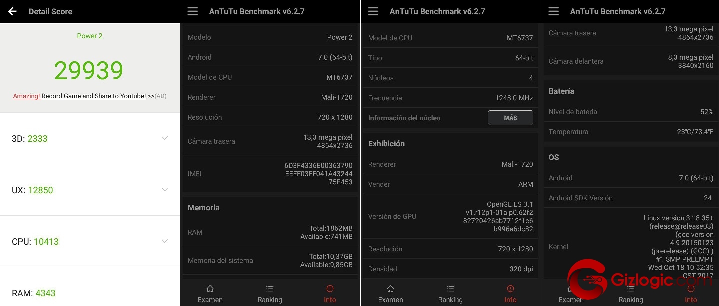 Este smartphone cuenta con una pantalla IPS HD de 5.5 pulgadas con una resolución de 1280 x 720 píxeles. Monta un procesador MediaTek MT6737 de cuatro núcleos Cortex-A53 a 1.3 GHz de velocidad. En cuanto a su procesador gráfico monta la conocida GPU Mali-T720 MP2.