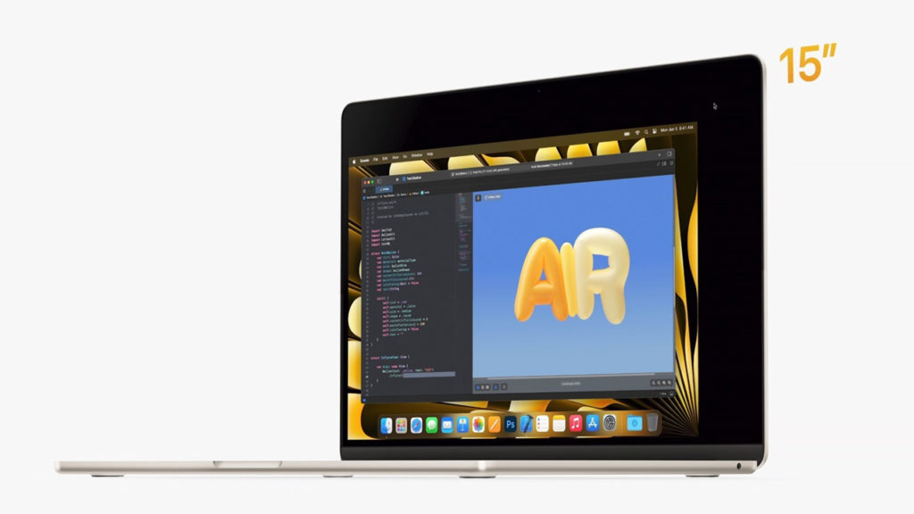 Desde Apple nos juran que esta se trata de la laptop más delgada de 15 pulgadas en el globo terráqueo, así como también un producto sumamente ligero (1.5 kilogramos). Esta nueva versión de la MacBook Air se presenta en 4 colores (blanco estrella, plata y gris), y en todos esboza una impresionante pantalla de 15.3 pulgadas con biseles prácticamente inexistentes de solo 5mm.