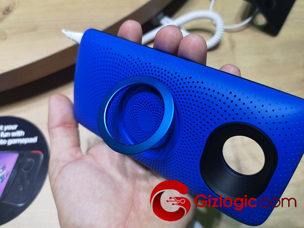Con un listado de Moto Mods que supera la decena, también hemos entrado en contacto con otras creaciones en asociación con terceros. Por ejemplo, el accesorio de Amazon Alexa suma cuatro micrófonos y altavoz para acceder a comandos de voz en todo momento, reproducir música y mucho más durante 15 horas.