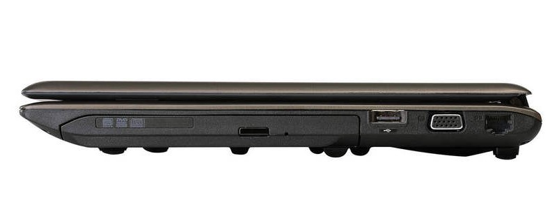 En su lateral derecho nos encontramos con un lector óptico sata, un puerto usb 2.0, la salida VGA, un conector RJ45 y el conector de alimentación.