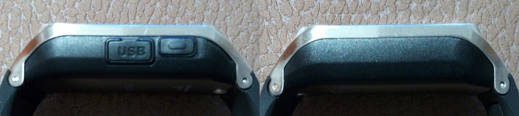 Si nos fijamos en sus laterales, en la parte izquierda podemos ver el único botón físico que posee este smartwatch y una tapa de goma cubriendo el puerto USB. En su parte derecha nada reseñable.