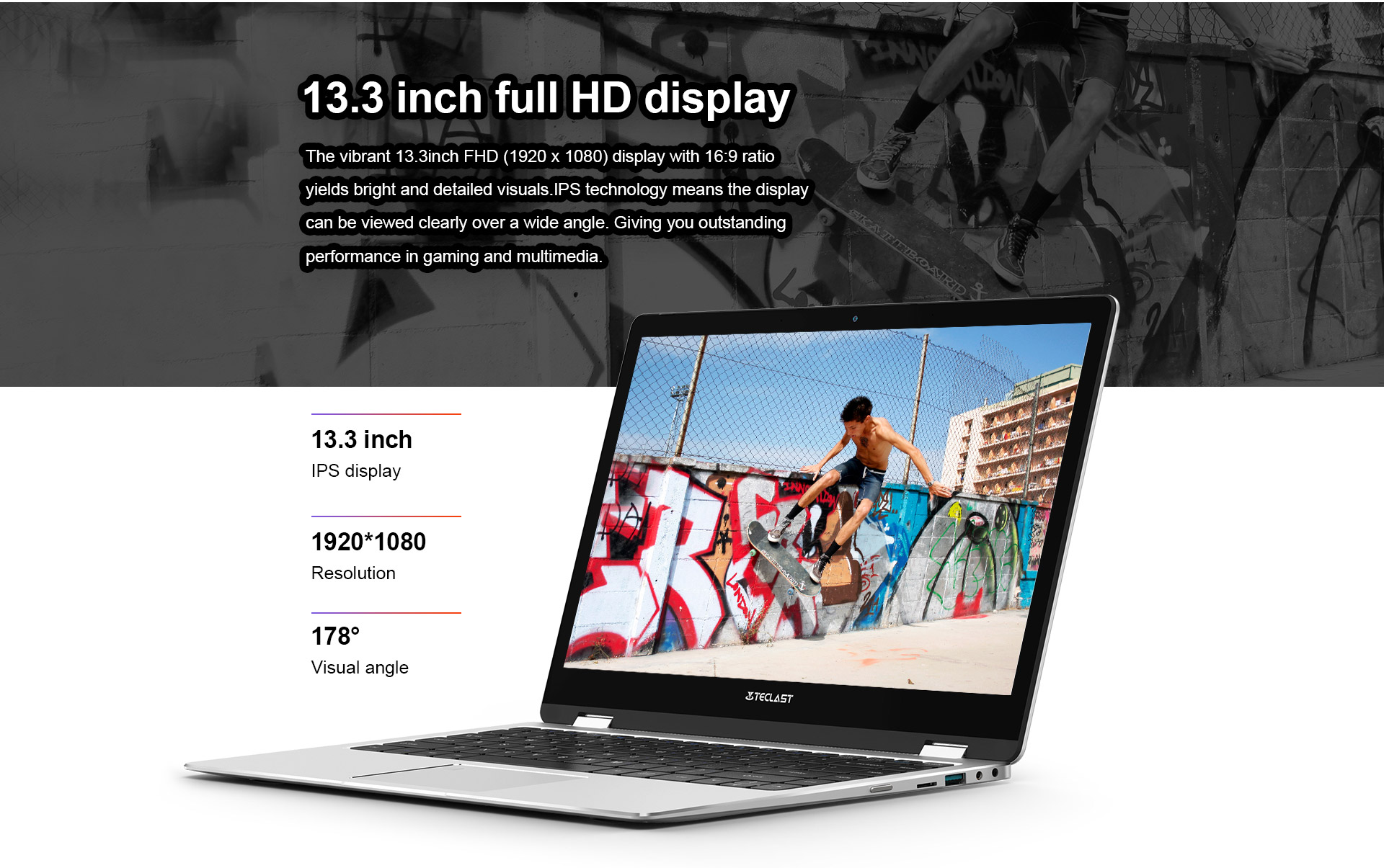 Para la pantalla se ha apostado por un panel táctil IPS de 13,3 pulgadas, que tiene una resolución Full HD de 1920 x 1080 píxeles. Esta pantalla cuenta con una relación de aspecto de 16:9, con un ángulo de visión de 178º. Esto nos garantiza una gran calidad de imagen cuando nos ponemos a ver nuestras series preferidas. En el marco superior del Teclast F6 Pro nos topamos con una webcam de 2 MP con tecnología de cancelación de ruido, que nos vendrá muy bien cuando queramos realizar alguna videoconferencia.