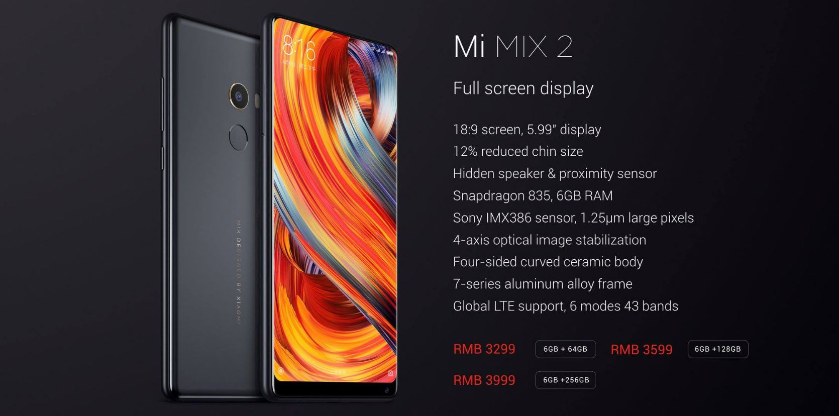 - Xiaomi Mi MIX 2 (256 GB): 3999 yuanes (510 euros)