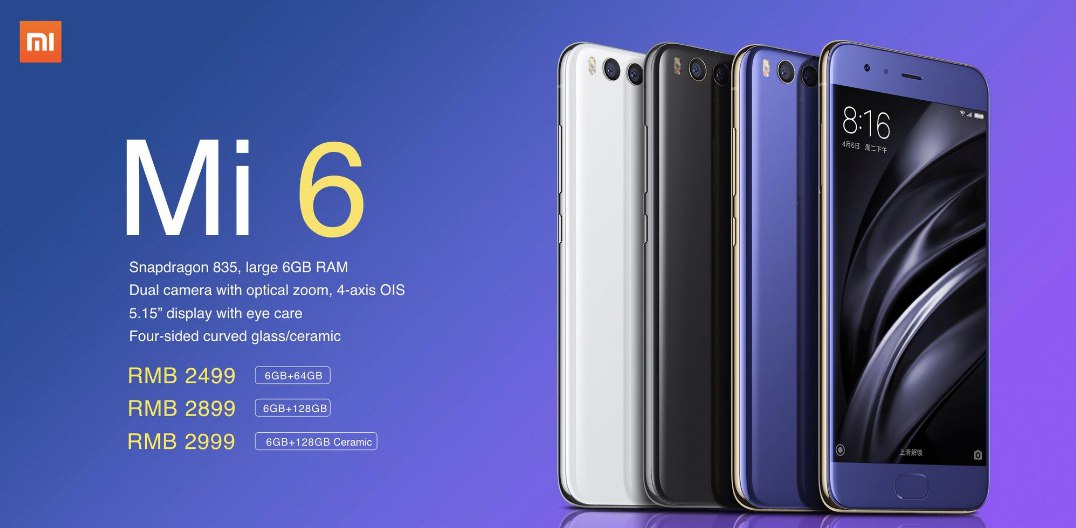 - Xiaomi Mi6 con 64 GB: 2.499 yuanes (340 euros)