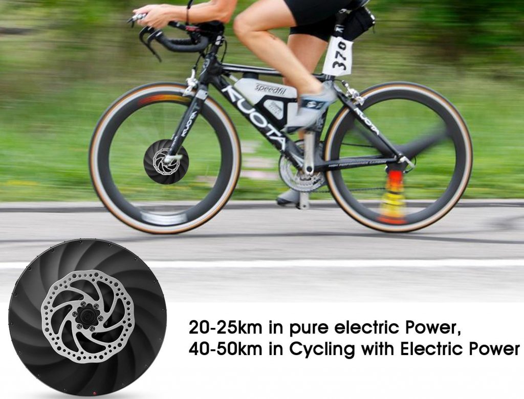 Tras ser colocado, este kit de motor eléctrico en forma de rueda permite alcanzar a nuestra bici una velocidad máxima de alrededor de 15Km/h, esto gracias a la potencia de su motor de 240W. Por otra parte, dispone de una batería recargable de 36V/115.2Wh que le permite alcanzar una autonomía de hasta 25 km en modo eléctrico y de 40 a 50 km en modo asistido.